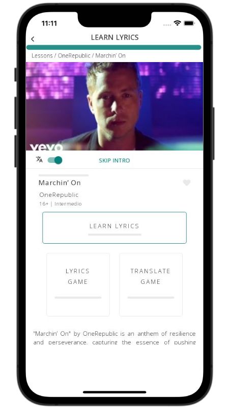 In addition to reading lyric translations, you can now learn English with music and lyrics from your favorite artists.