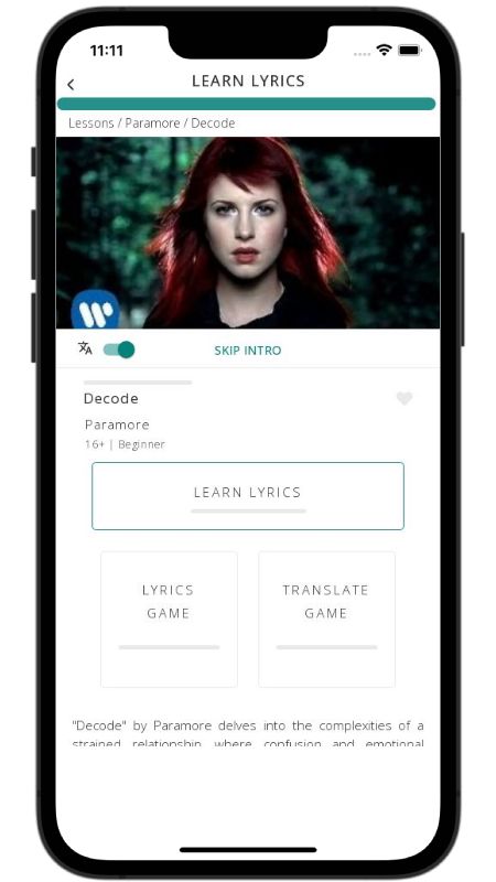 In addition to reading lyric translations, you can now learn English with music and lyrics from your favorite artists.