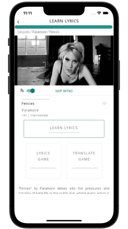 In addition to reading lyric translations, you can now learn English with music and lyrics from your favorite artists.
