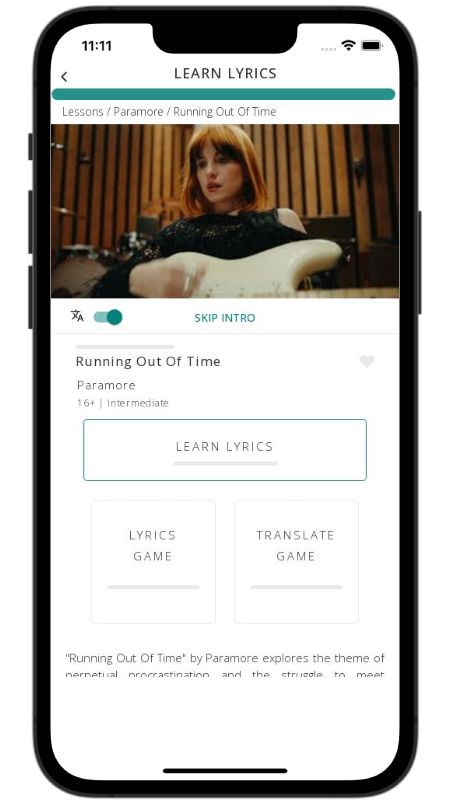 In addition to reading lyric translations, you can now learn English with music and lyrics from your favorite artists.