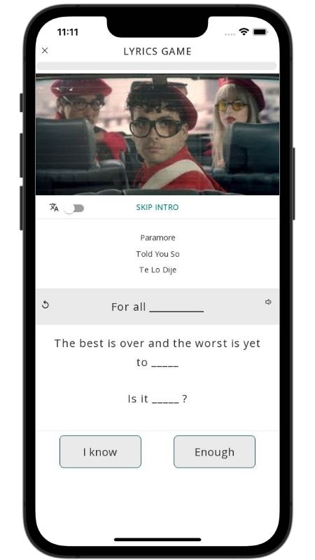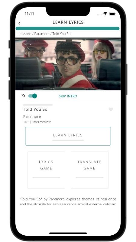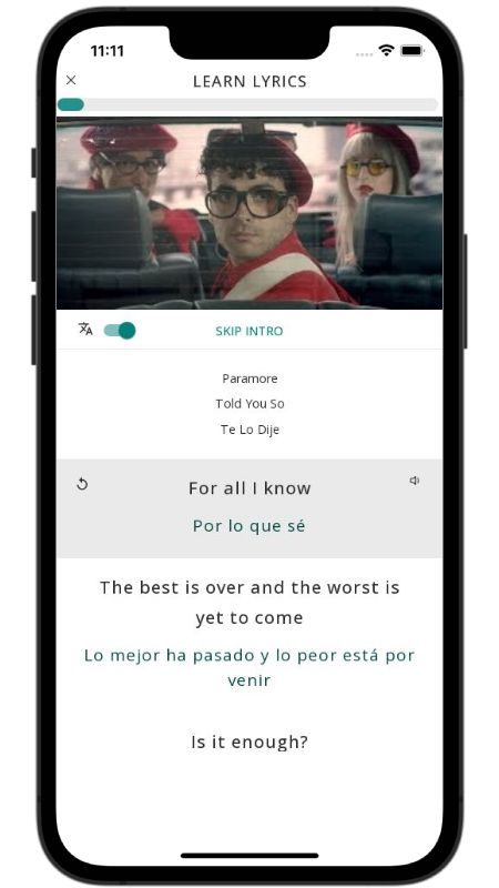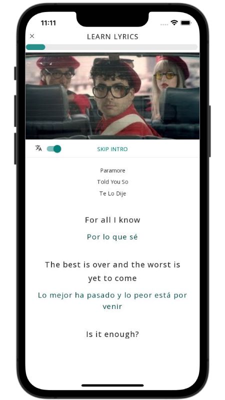 In addition to reading lyric translations, you can now learn English with music and lyrics from your favorite artists.