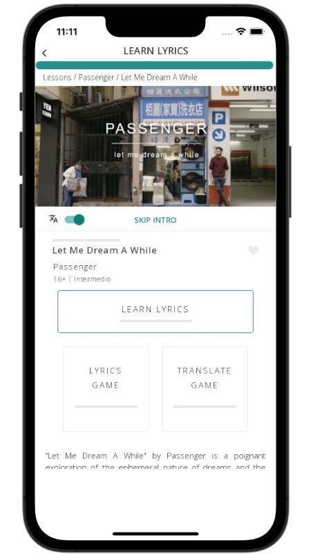 In addition to reading lyric translations, you can now learn English with music and lyrics from your favorite artists.