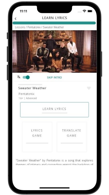In addition to reading lyric translations, you can now learn English with music and lyrics from your favorite artists.