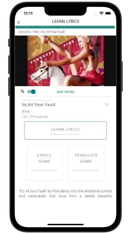 In addition to reading lyric translations, you can now learn English with music and lyrics from your favorite artists.