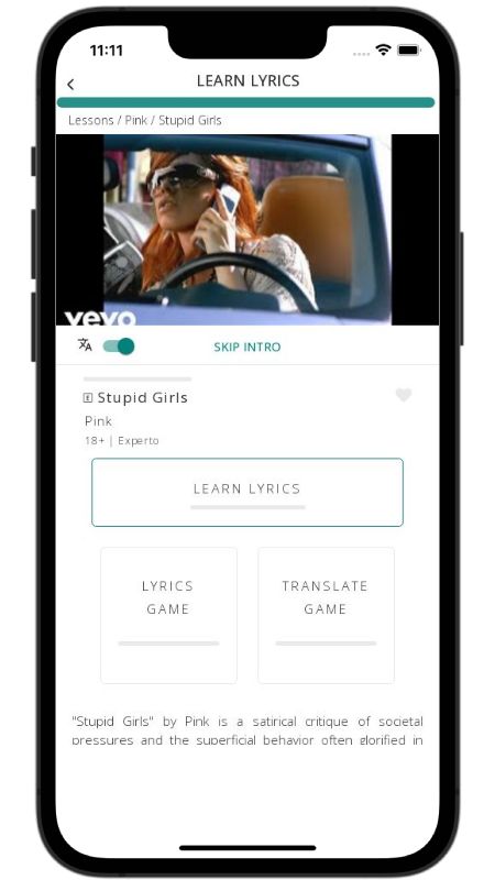 In addition to reading lyric translations, you can now learn English with music and lyrics from your favorite artists.