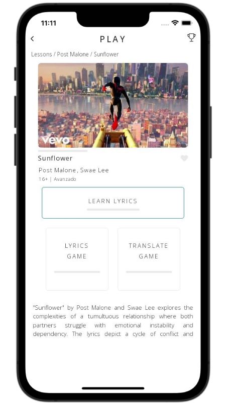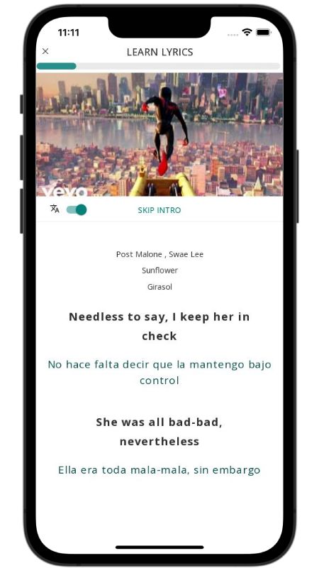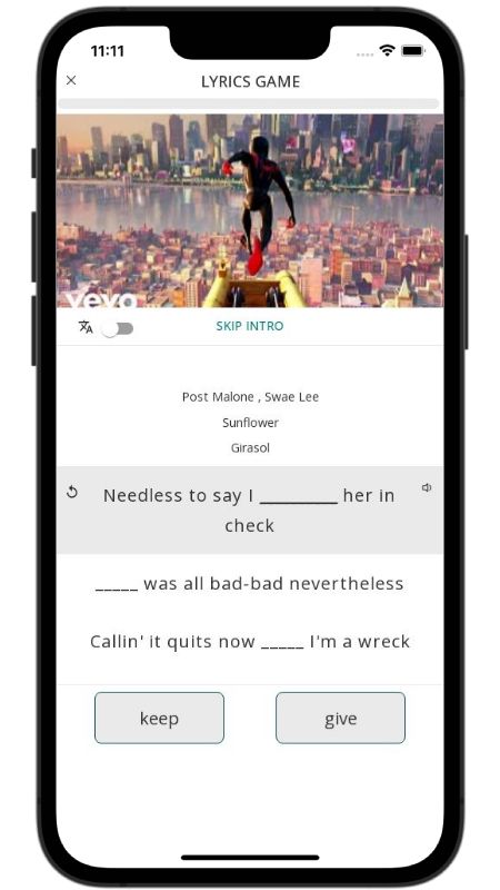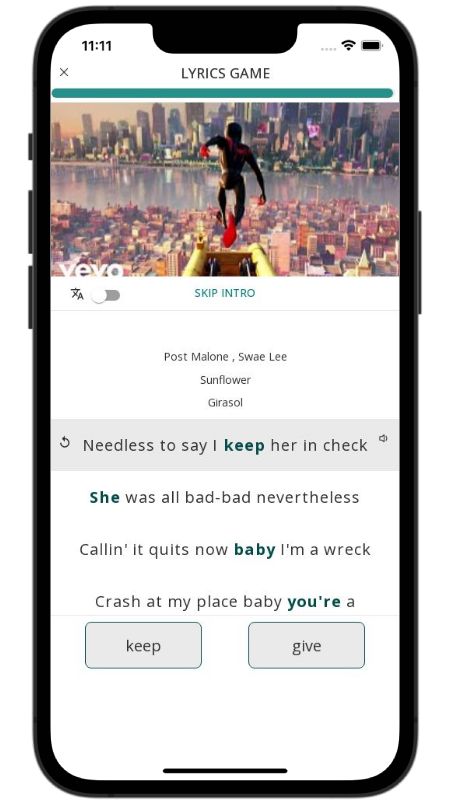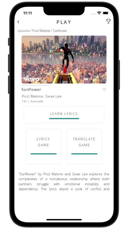 In addition to reading lyric translations, you can now learn English with music and lyrics from your favorite artists.