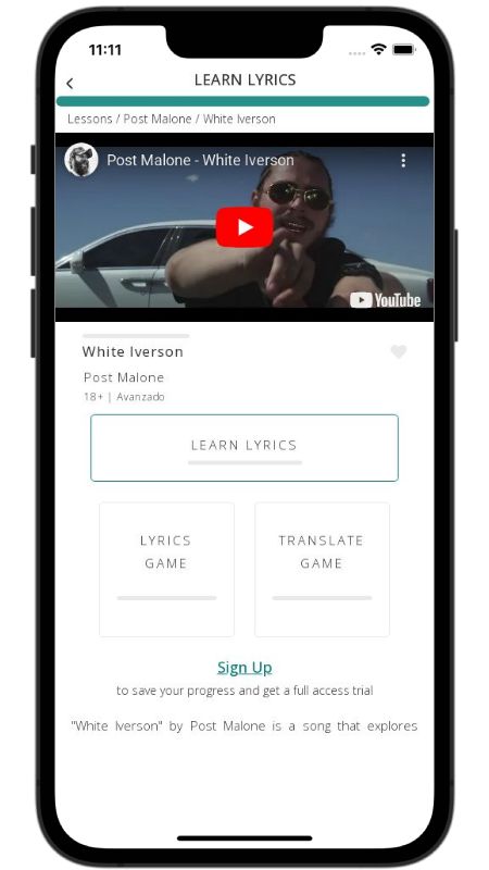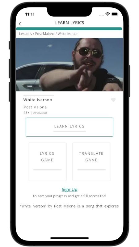 In addition to reading lyric translations, you can now learn English with music and lyrics from your favorite artists.