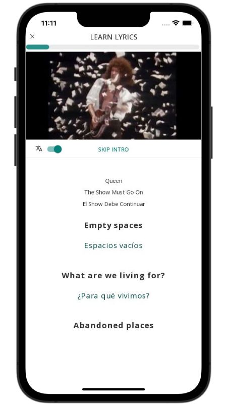 In addition to reading lyric translations, you can now learn English with music and lyrics from your favorite artists.