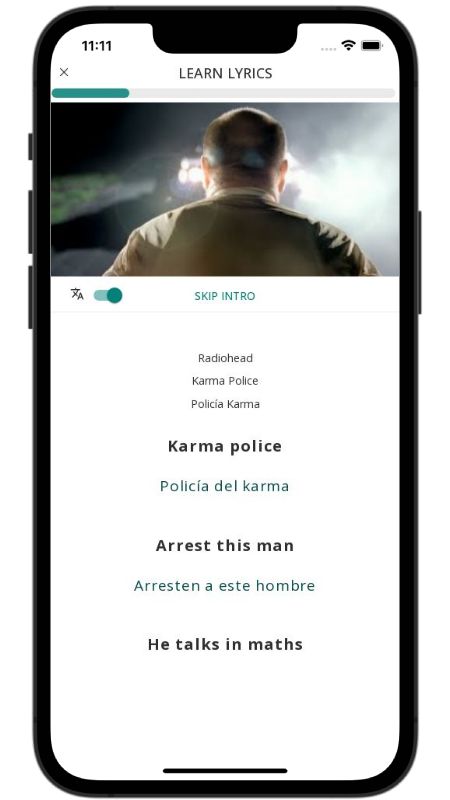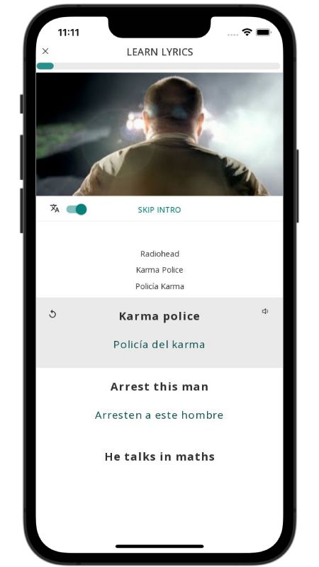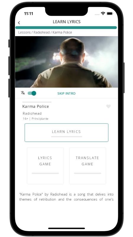 In addition to reading lyric translations, you can now learn English with music and lyrics from your favorite artists.