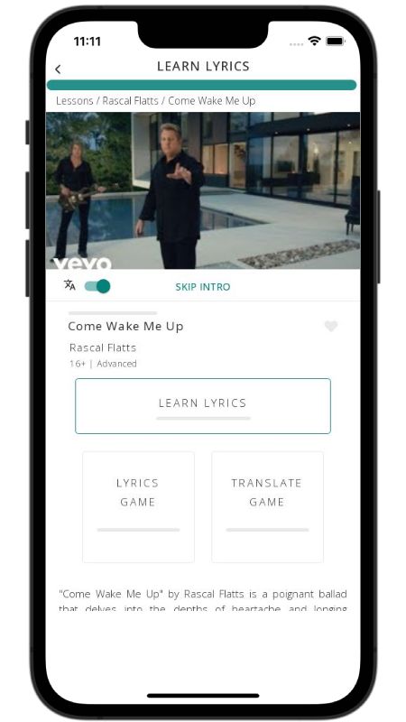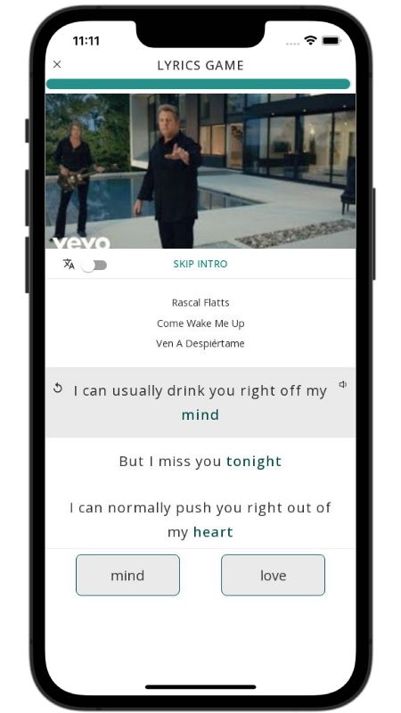 In addition to reading lyric translations, you can now learn English with music and lyrics from your favorite artists.