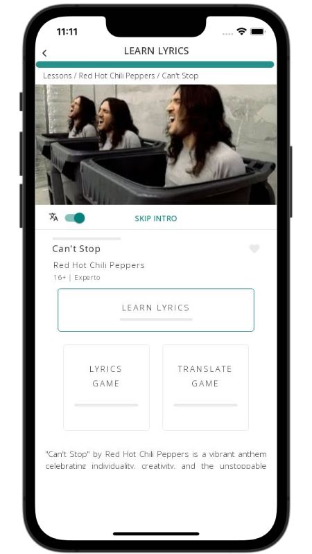 In addition to reading lyric translations, you can now learn English with music and lyrics from your favorite artists.