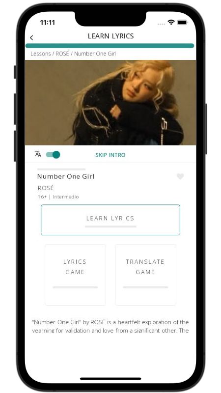 In addition to reading lyric translations, you can now learn English with music and lyrics from your favorite artists.