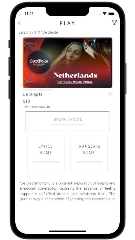 In addition to reading lyric translations, you can now learn Dutch with music and lyrics from your favorite artists.