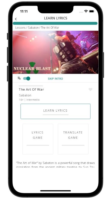 In addition to reading lyric translations, you can now learn English with music and lyrics from your favorite artists.