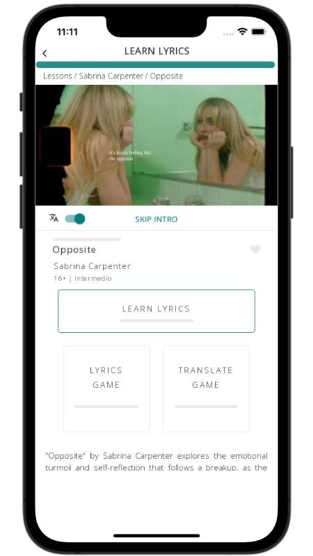 In addition to reading lyric translations, you can now learn English with music and lyrics from your favorite artists.
