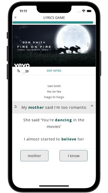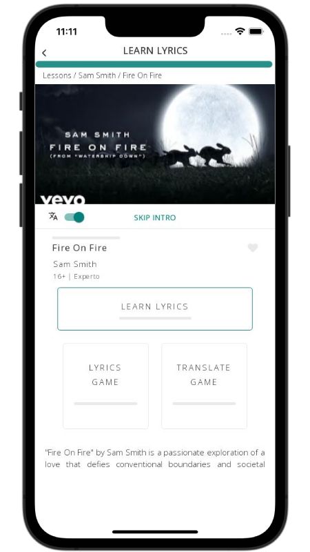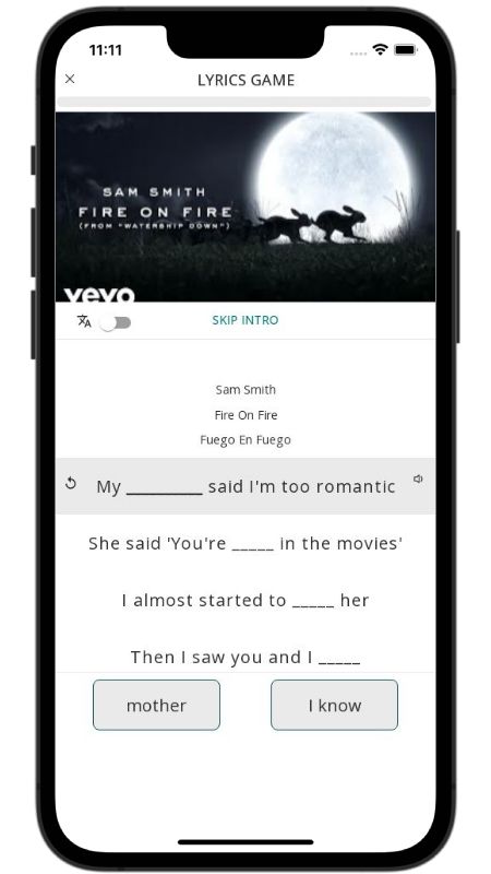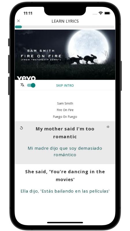 In addition to reading lyric translations, you can now learn English with music and lyrics from your favorite artists.