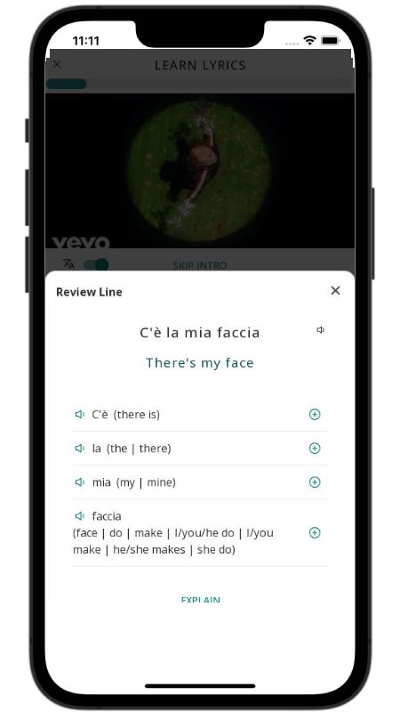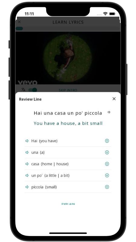 In addition to reading lyric translations, you can now learn Italian with music and lyrics from your favorite artists.