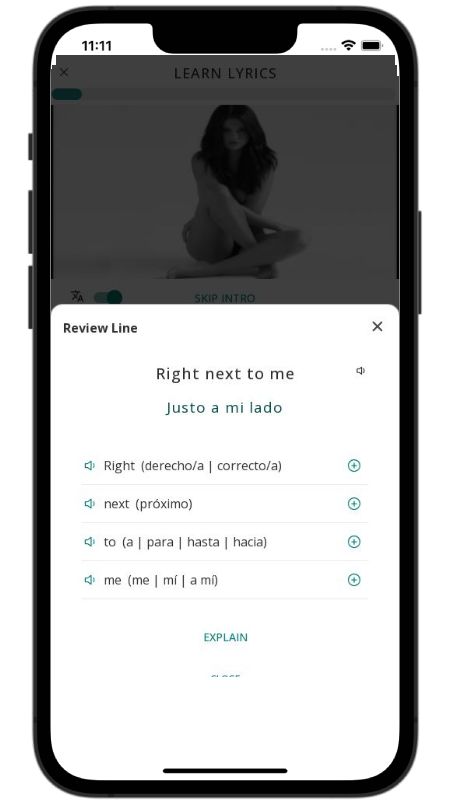 In addition to reading lyric translations, you can now learn English with music and lyrics from your favorite artists.