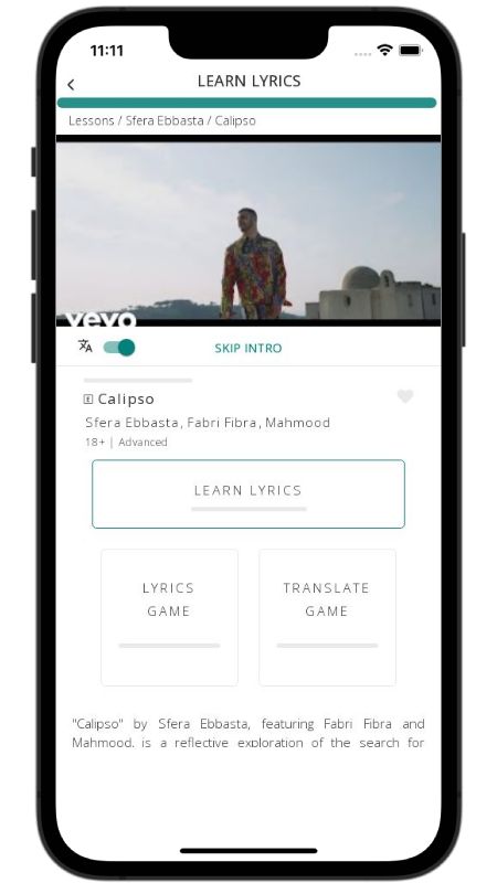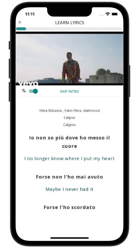 In addition to reading lyric translations, you can now learn Italian with music and lyrics from your favorite artists.