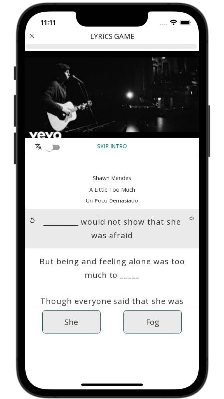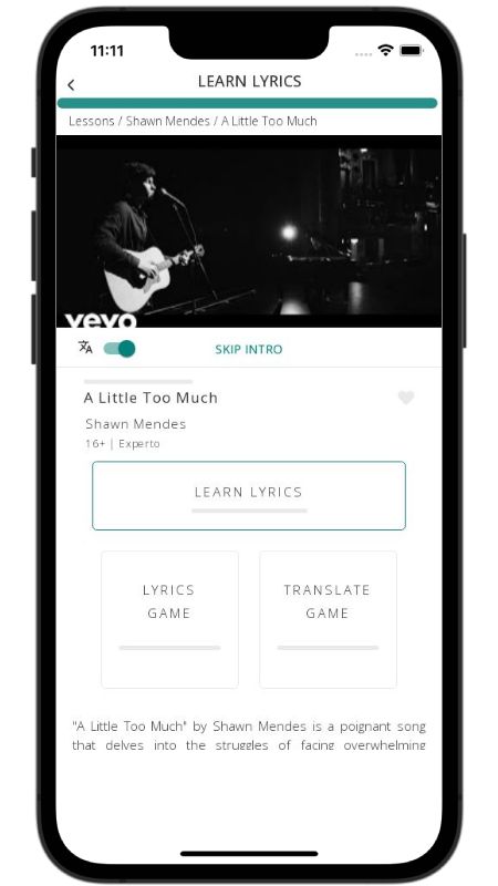 In addition to reading lyric translations, you can now learn English with music and lyrics from your favorite artists.