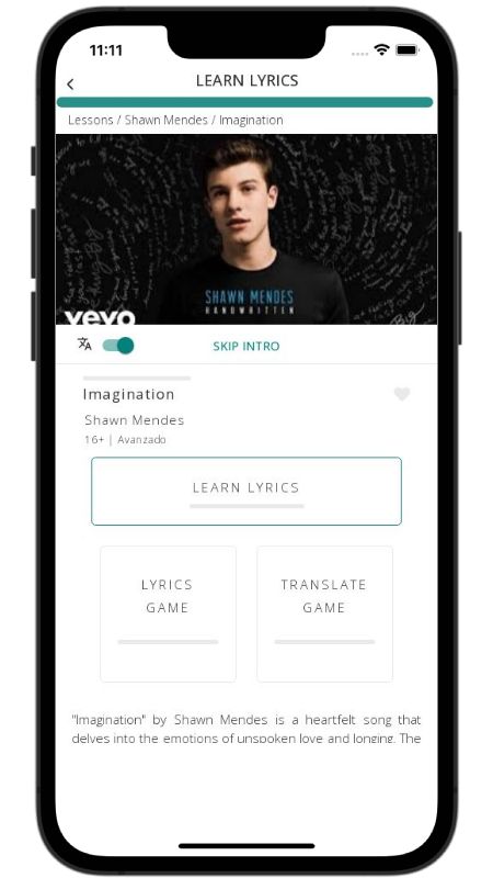 In addition to reading lyric translations, you can now learn English with music and lyrics from your favorite artists.