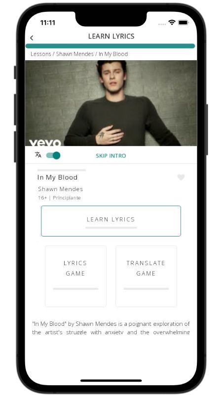In addition to reading lyric translations, you can now learn English with music and lyrics from your favorite artists.