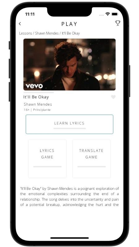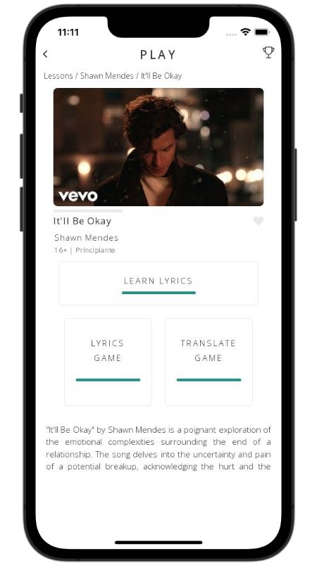 In addition to reading lyric translations, you can now learn English with music and lyrics from your favorite artists.