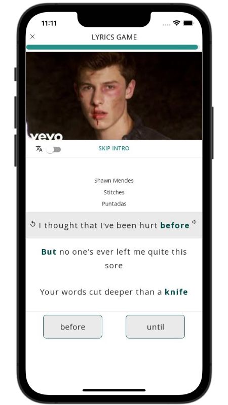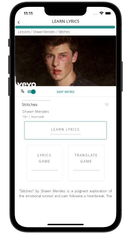 In addition to reading lyric translations, you can now learn English with music and lyrics from your favorite artists.