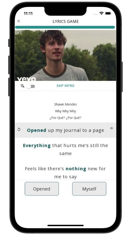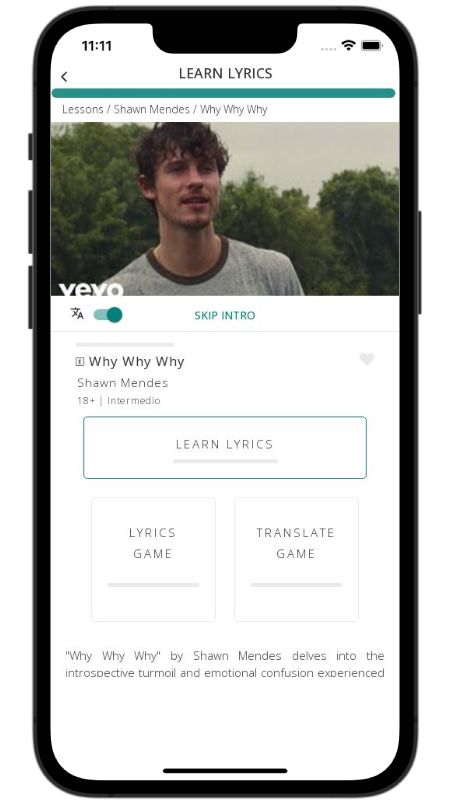 In addition to reading lyric translations, you can now learn English with music and lyrics from your favorite artists.