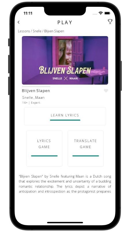 In addition to reading lyric translations, you can now learn Dutch with music and lyrics from your favorite artists.