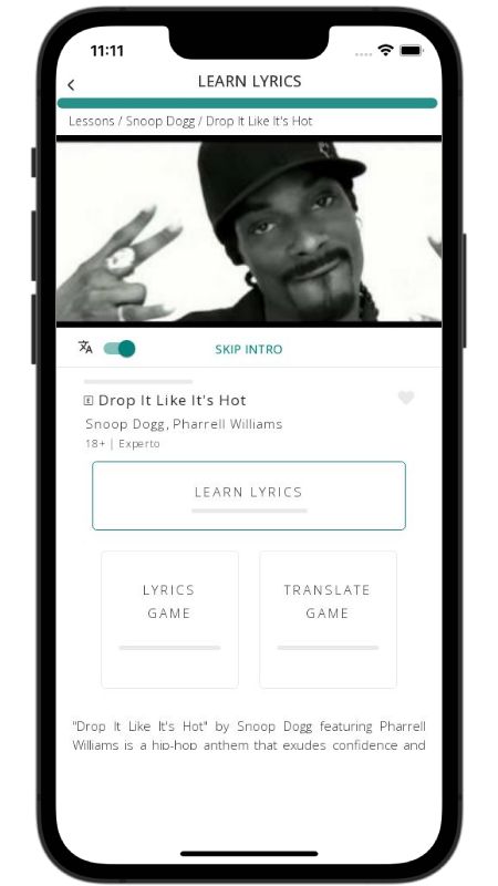 In addition to reading lyric translations, you can now learn English with music and lyrics from your favorite artists.