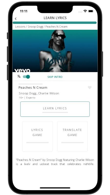 In addition to reading lyric translations, you can now learn English with music and lyrics from your favorite artists.
