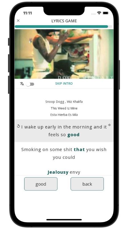 In addition to reading lyric translations, you can now learn English with music and lyrics from your favorite artists.