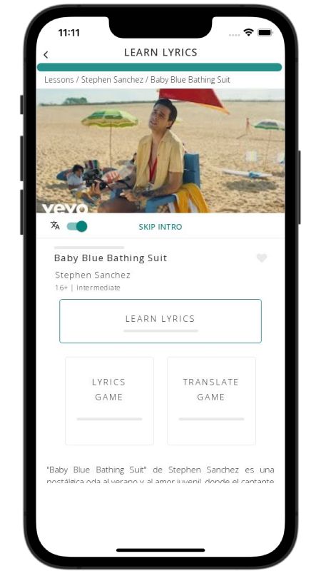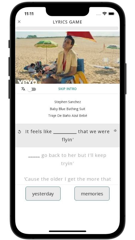 In addition to reading lyric translations, you can now learn English with music and lyrics from your favorite artists.