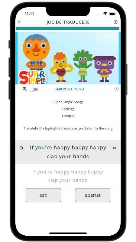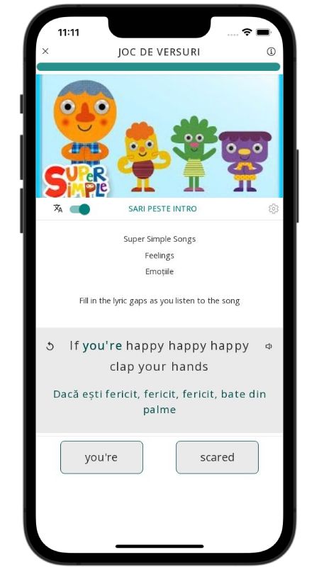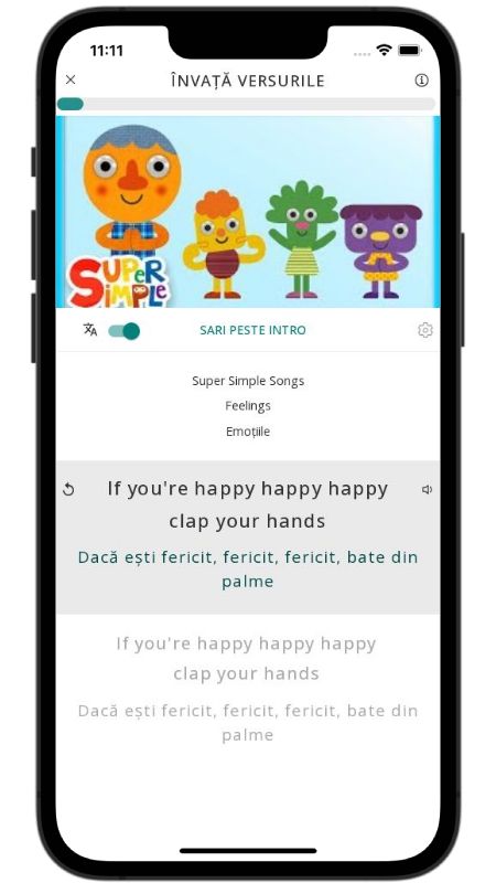 Fiecare vers te învață o emoție nouă și acțiunea corespunzătoare. Când ești fericit, bați din palme. Când ești furios, bați din picioare. Dacă ți-e frică, spui 'Nu!', iar când ești somnoros, e timpul pentru un pui de somn. Haide să cântăm, să dansăm și să ne exprimăm sentimentele împreună! Bate din palme, bate din picioare și învață română cu bucurie!