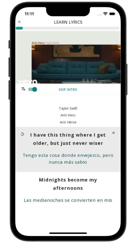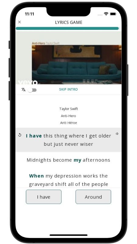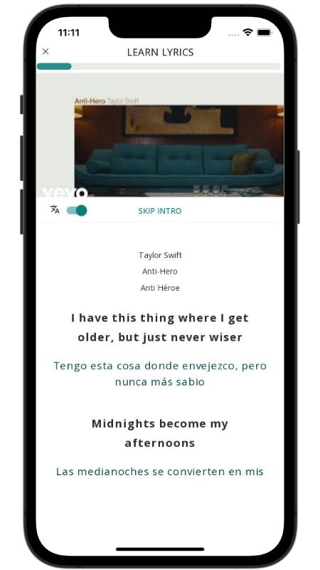 In addition to reading lyric translations, you can now learn English with music and lyrics from your favorite artists.