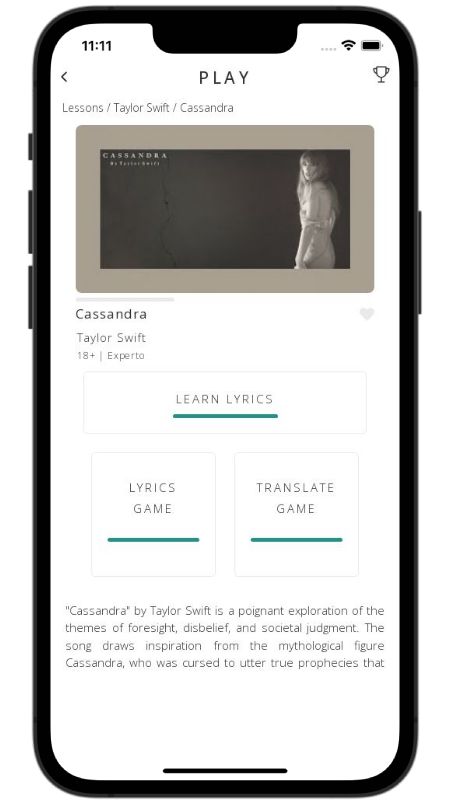 In addition to reading lyric translations, you can now learn English with music and lyrics from your favorite artists.