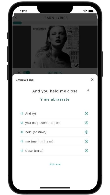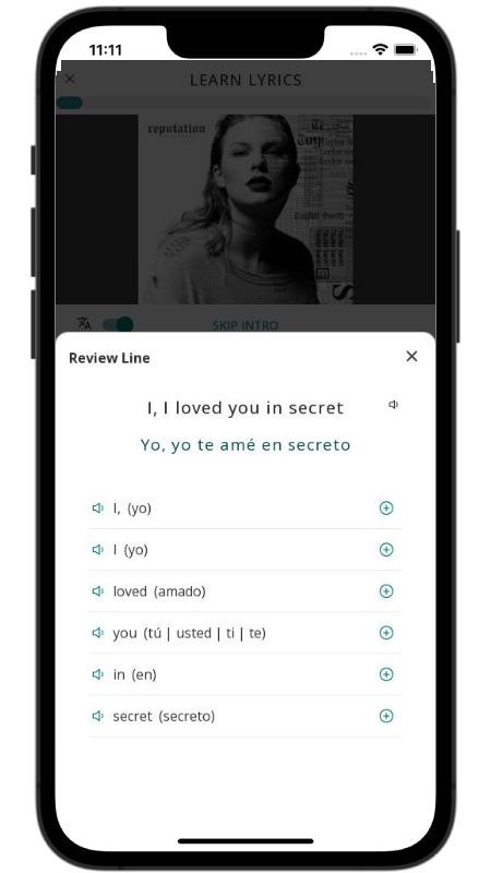 In addition to reading lyric translations, you can now learn English with music and lyrics from your favorite artists.