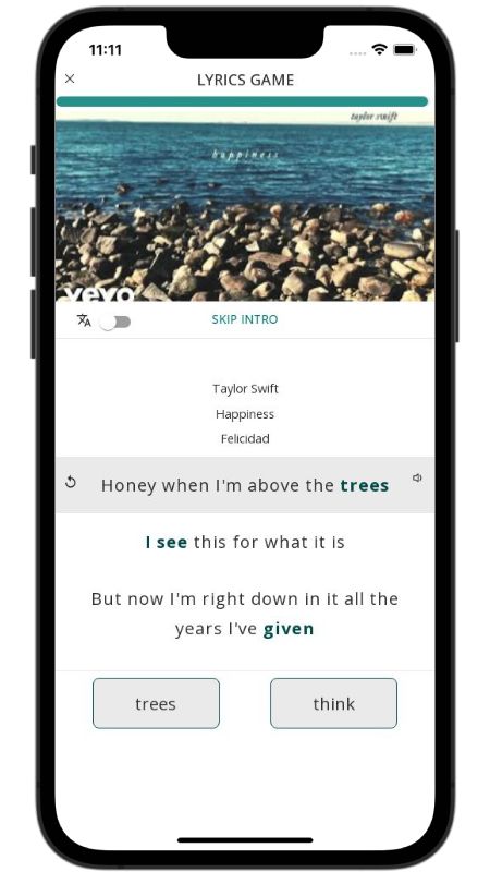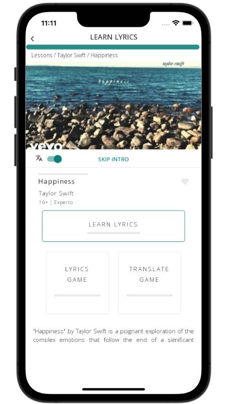 In addition to reading lyric translations, you can now learn English with music and lyrics from your favorite artists.