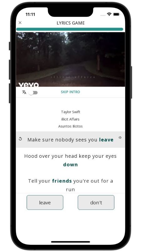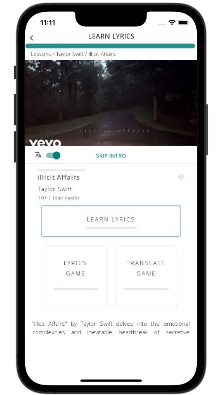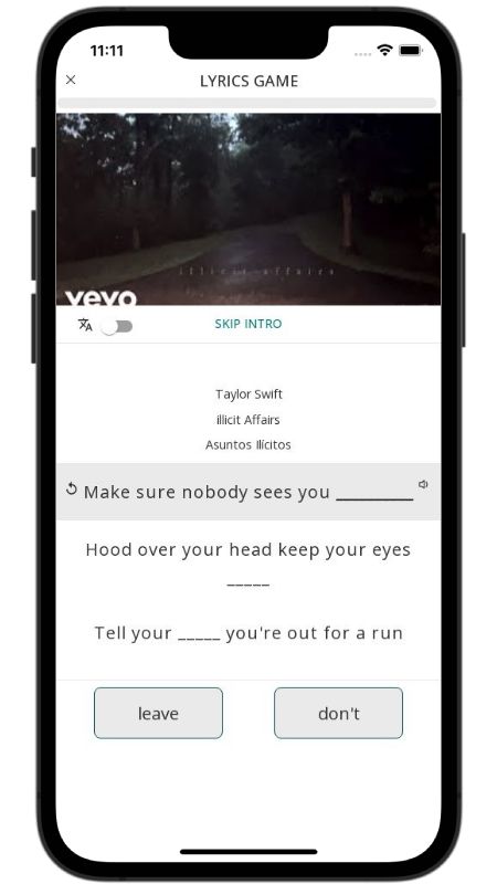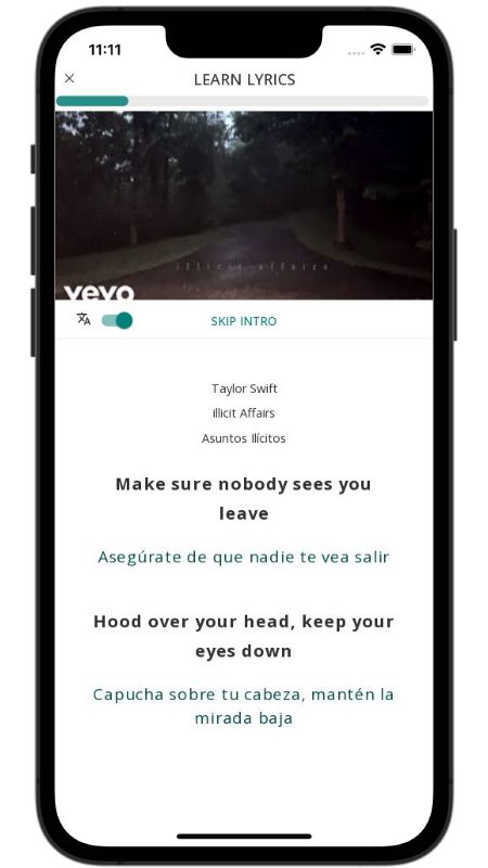 In addition to reading lyric translations, you can now learn English with music and lyrics from your favorite artists.