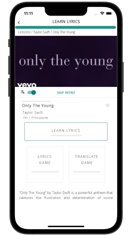 In addition to reading lyric translations, you can now learn English with music and lyrics from your favorite artists.