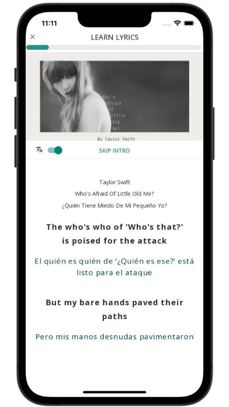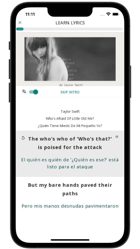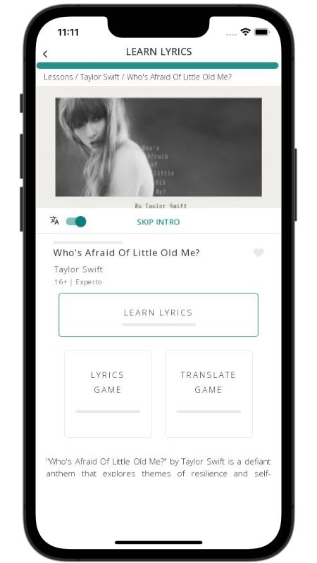 In addition to reading lyric translations, you can now learn English with music and lyrics from your favorite artists.