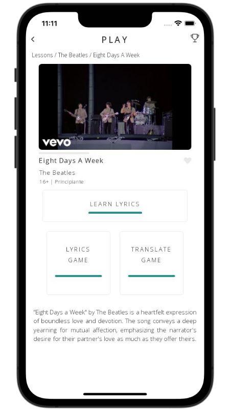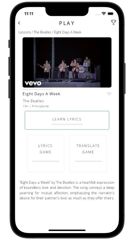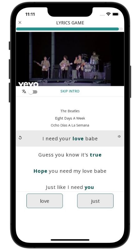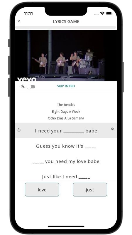 In addition to reading lyric translations, you can now learn English with music and lyrics from your favorite artists.