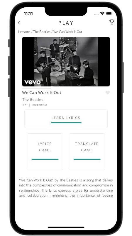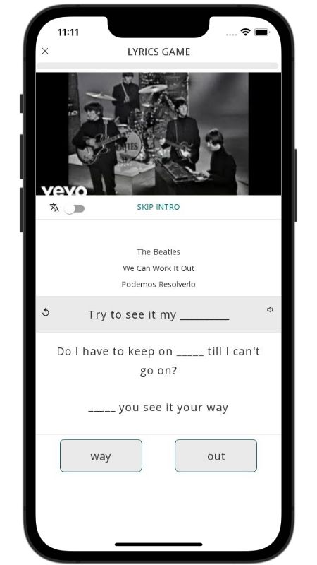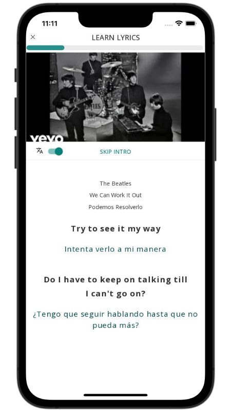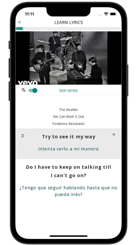 In addition to reading lyric translations, you can now learn English with music and lyrics from your favorite artists.