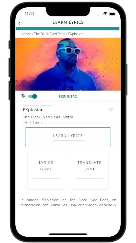 In addition to reading lyric translations, you can now learn English with music and lyrics from your favorite artists.