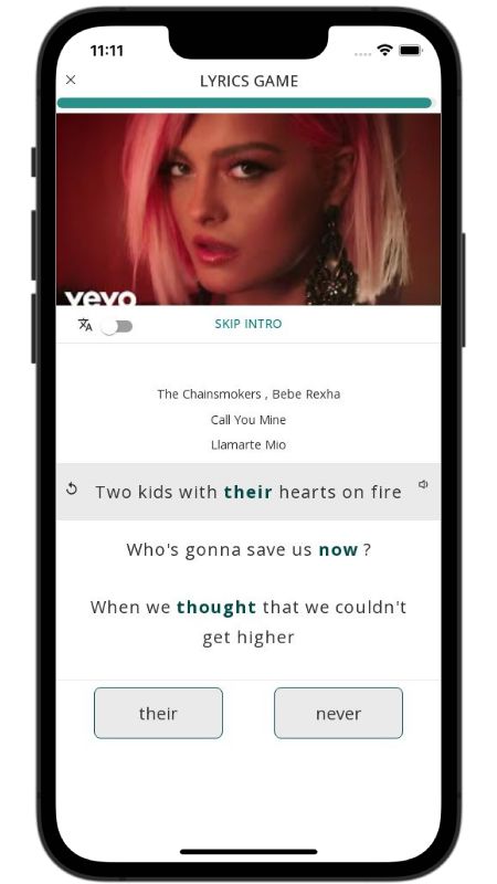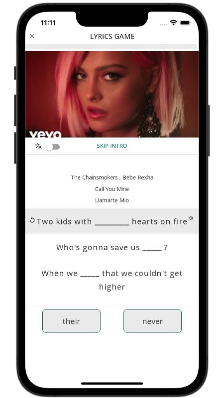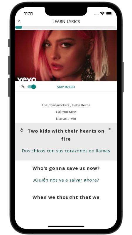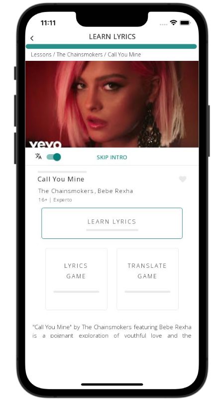 In addition to reading lyric translations, you can now learn English with music and lyrics from your favorite artists.