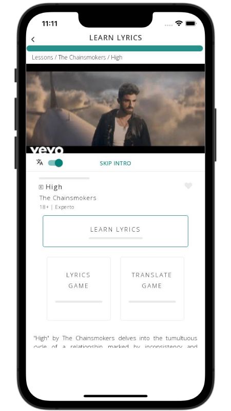 In addition to reading lyric translations, you can now learn English with music and lyrics from your favorite artists.