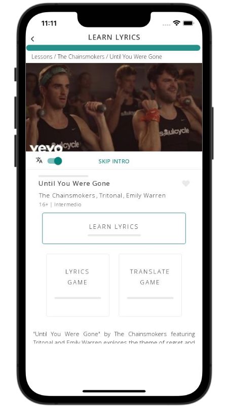 In addition to reading lyric translations, you can now learn English with music and lyrics from your favorite artists.
