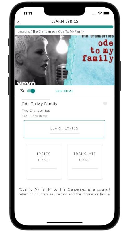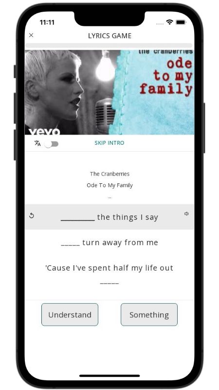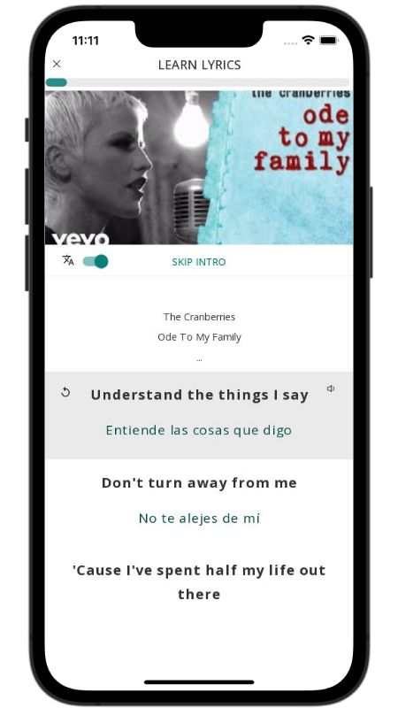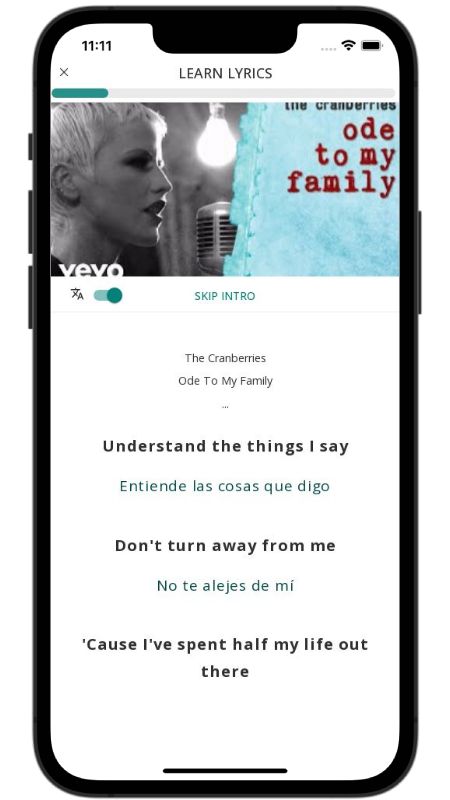 In addition to reading lyric translations, you can now learn English with music and lyrics from your favorite artists.