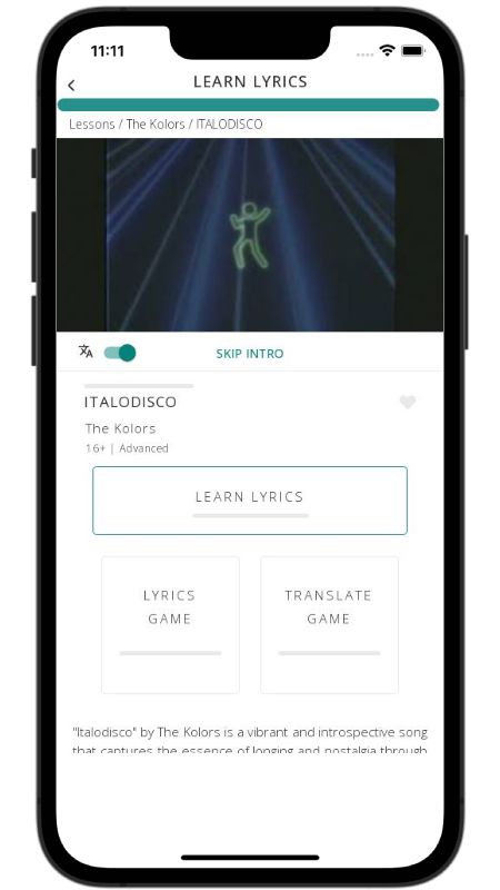 In addition to reading lyric translations, you can now learn Italian with music and lyrics from your favorite artists.